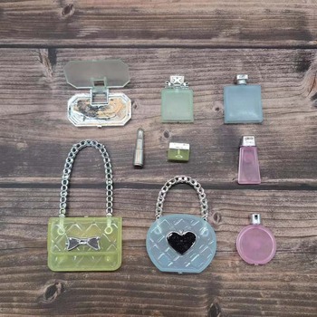Nova chegada boneca brinquedo acessórios simulação plástico cosméticos caso batom Perfume Bottle Bag cosméticos set(1 set = 9 pcs)